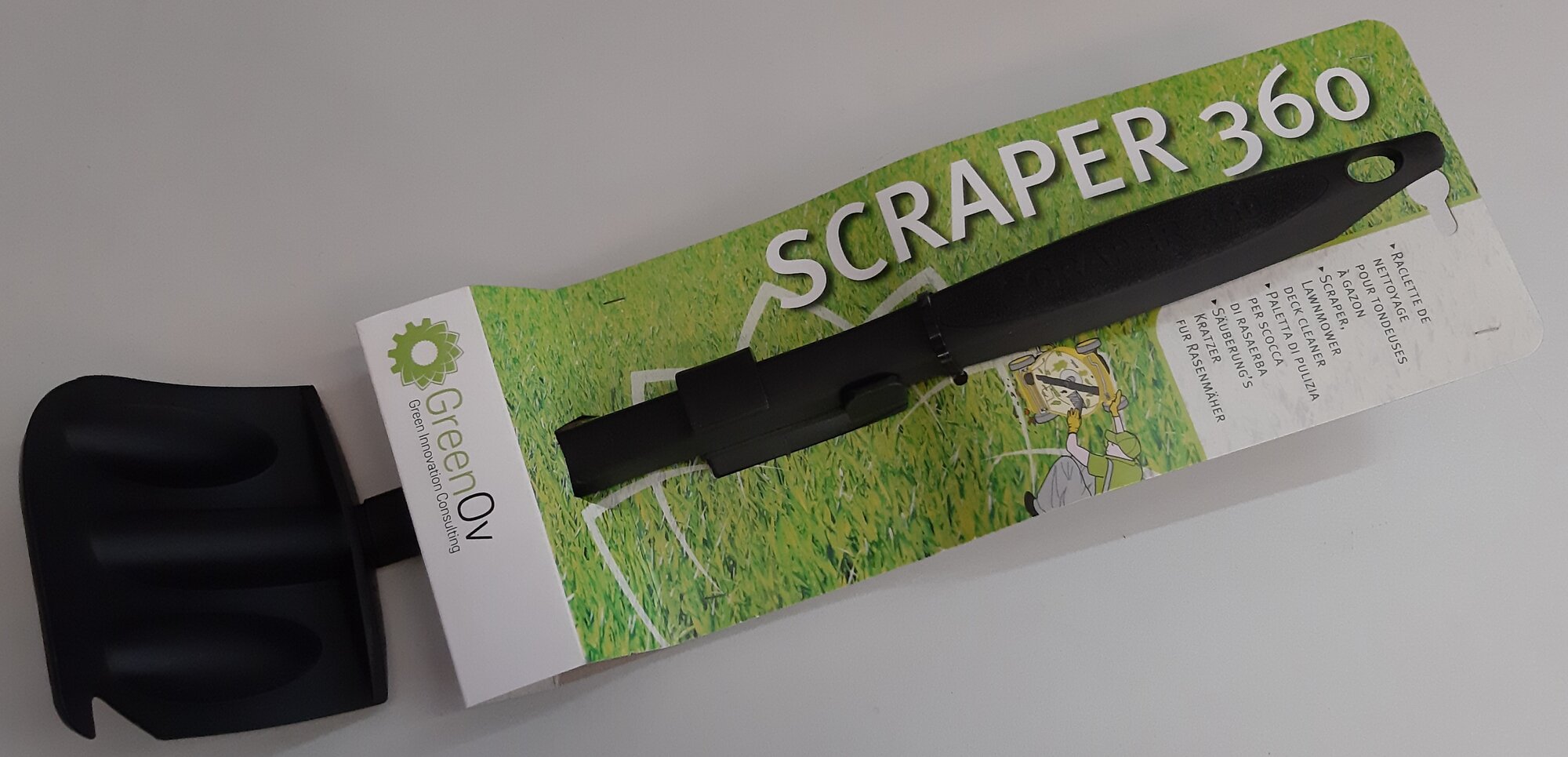 Po každém použití je nutné sekačku zbavit nalepených zbytků trávy, hlíny, listí a dalších nečistot, které jsou nalepeny na vnitřní straně sekací komory v prostoru sekacího nože. Tato škrabka je určena právě na šetrné čištění vyčištění tohoto prostoru sekačky.
