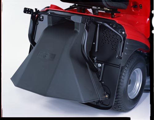 Deflektror usměrní vyhazovanou trávu k zemi a zabrání případnému vymrštění náhodného kamene či jiného předmětu do prostoru za traktorem při sekání bez sběru do travního boxu.
