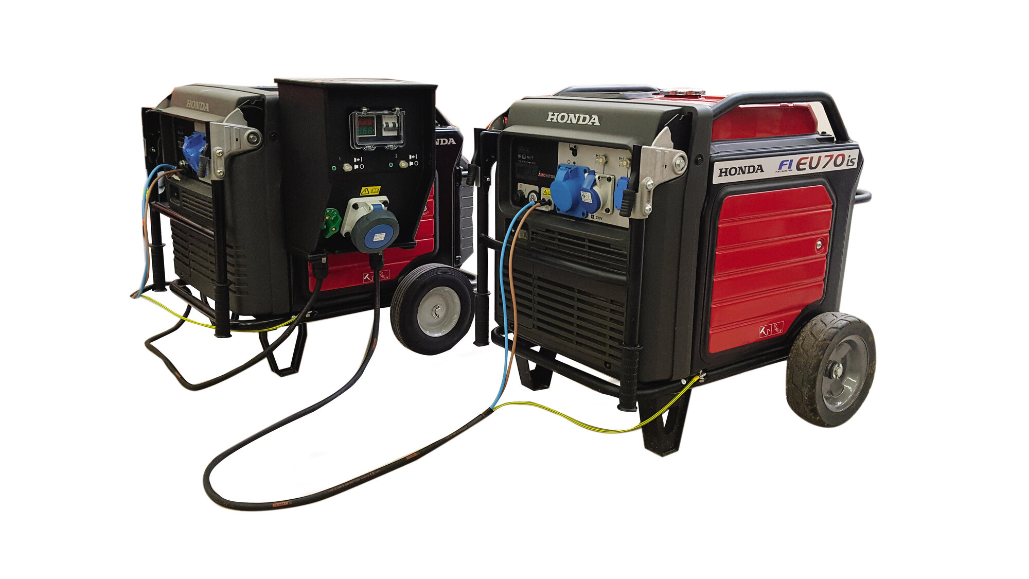 Mezi přední výhody invertorové technologie patří možnost souběžného provozu nebo-li "sfázování" dvou identických elektrocentrál. S použitím speciálních propojovacích kabelů pro souběžný provoz lze propojit dvě identické elektrocentrály EU70iS a získat tak dvojnásobek elektrického výkonu. Propojovací kabely jsou opatřeny zásuvkovým boxem s příslušným jištěním.
