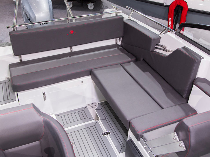 Prostor mezi lavicí na zádi plavidla a sedačkou spolujezdce lze vyplnit sedačkou (plně polstrovanou) a vznikne tak jednolitá pohovka ve tvaru písmene L.