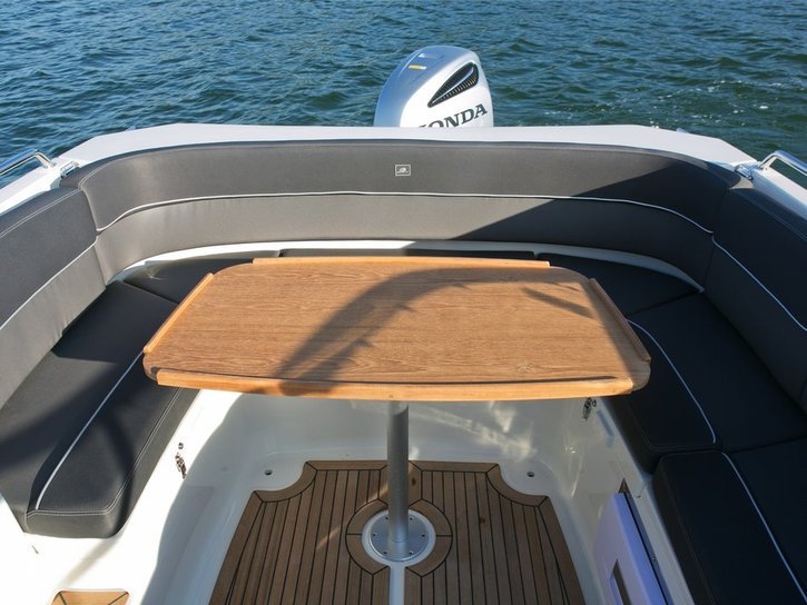 Stolek s nohou a matrací s možností složení na opalovací lůžko.