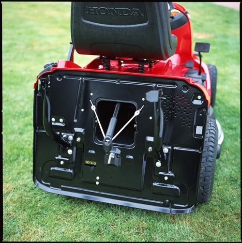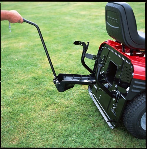 Uzavírá komín výhozu trávy do travního koše při mulčování.