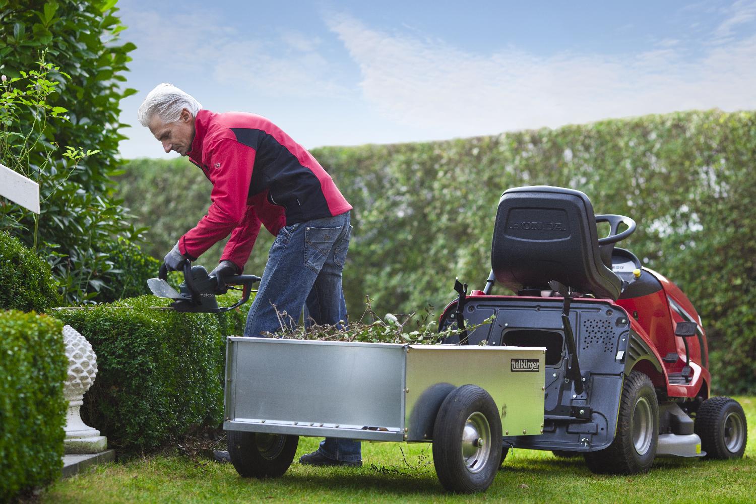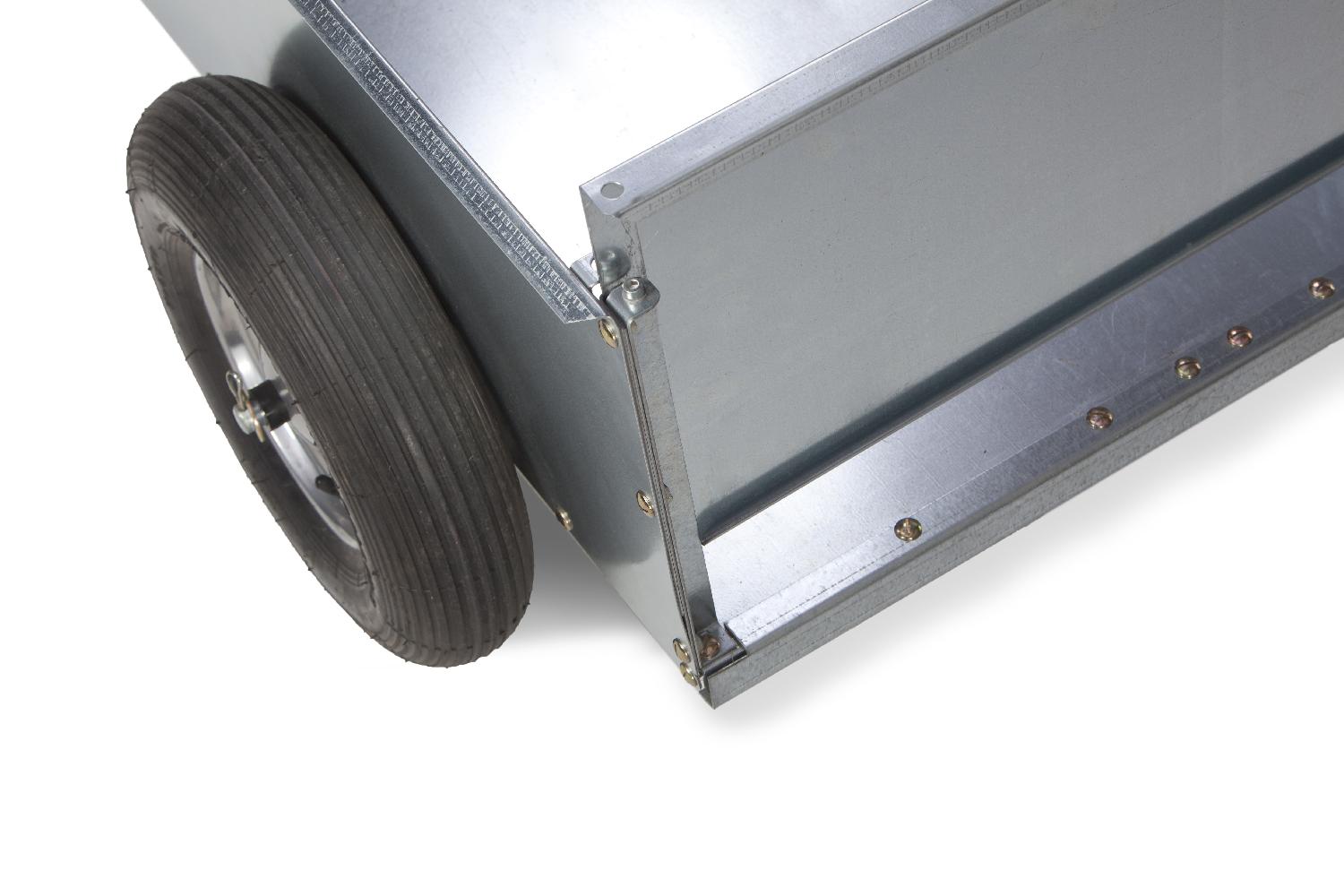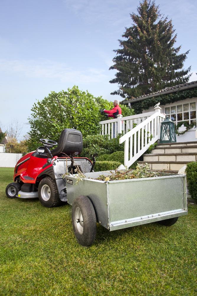 Transportní přívěsný vozík slouží k přepravě např. zahradního nářadí, zahradního odpadu, pytlů s mulčovací kůrou, písku či jiného sypkého materiálu, dřeva atd. Vozík je opatřen nafukovacími koly a nemá sklápěcí korbu.